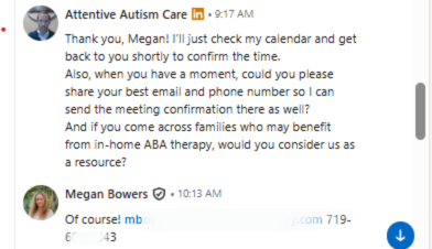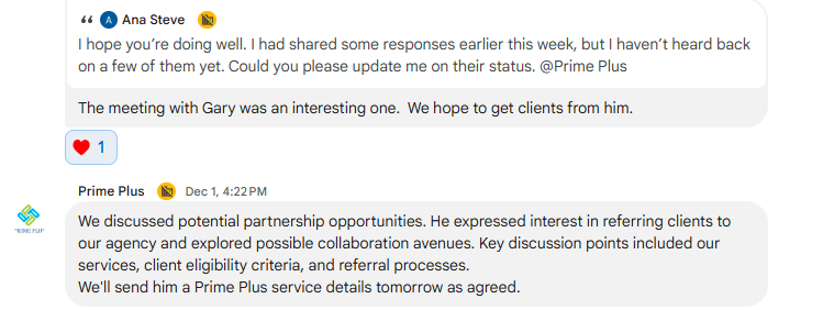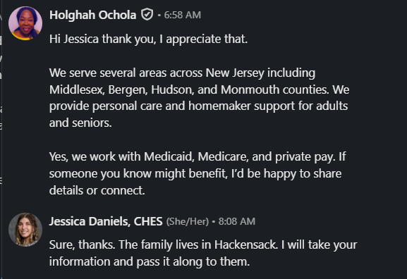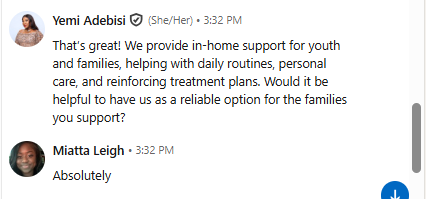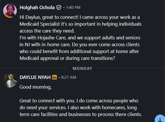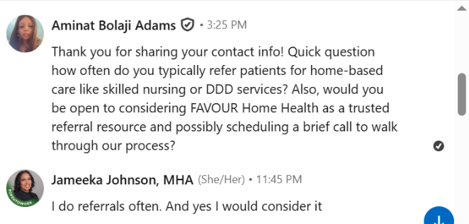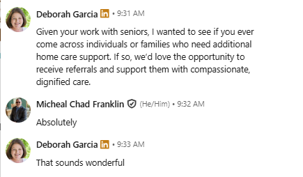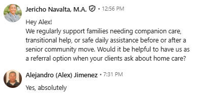 We had a great chat and she is willing to send referrals. These are exactly the kinds of partnerships I needed for my agency’s growth.