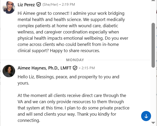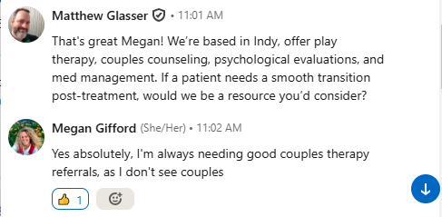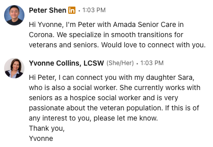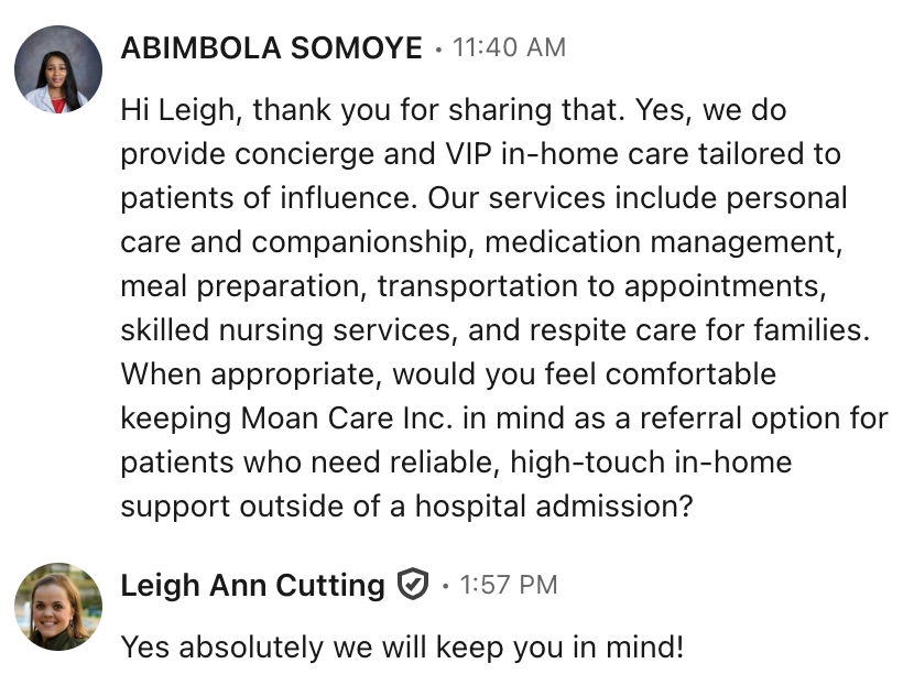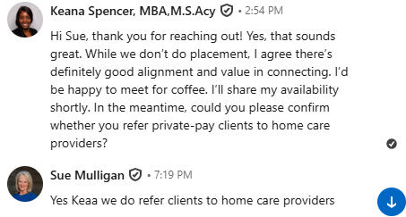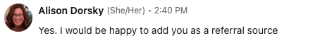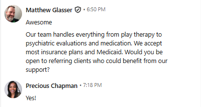 I needed introductions to the right people, not just anyone. Now I have referral sources who are open to working together, and the conversations are happening faster than I expected.
