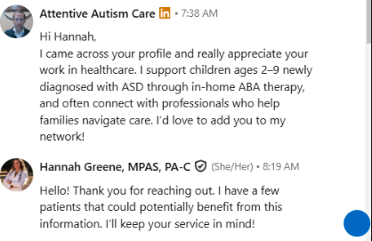 In just two weeks, I’ve connected with exactly the type of professionals who can refer the right patients. I now have meaningful relationships forming, and the process has been effortless on my end.