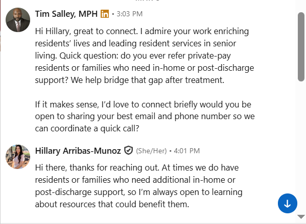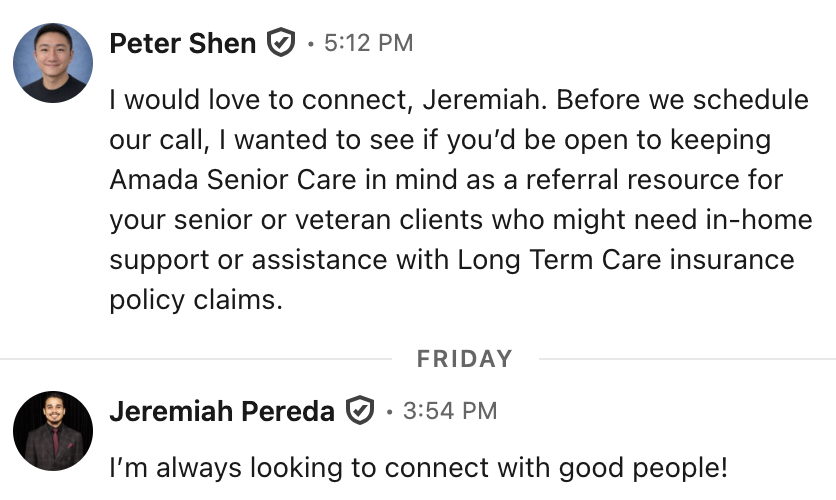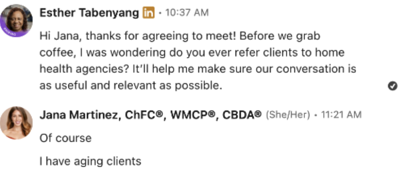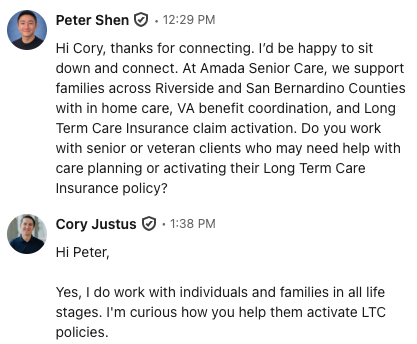 This process gave me direct access to the exact people I needed to reach. Now I have real referral partners in place, and the conversations are leading to actionable opportunities.