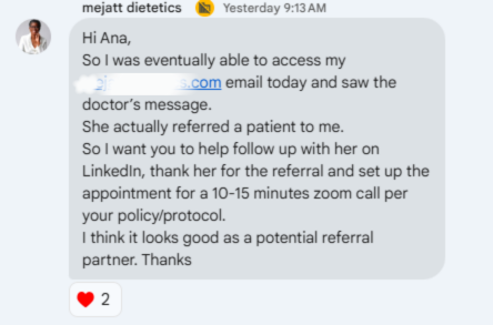 This system changed how I think about networking. In a month, I connected with professionals I never thought I’d reach — and now I have referral partners ready to send patients. I couldn’t have done this alone.